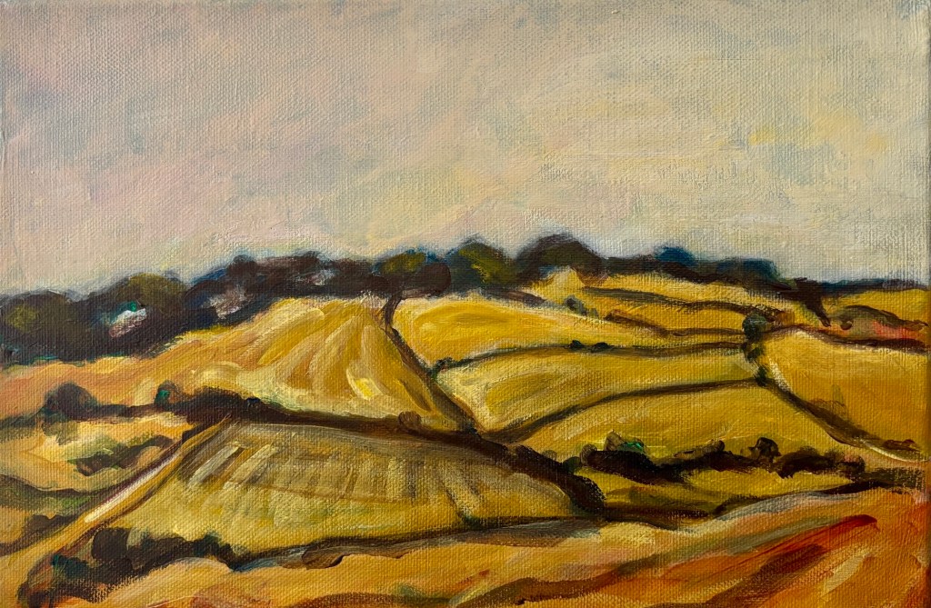 View across the fields 2025 gouache