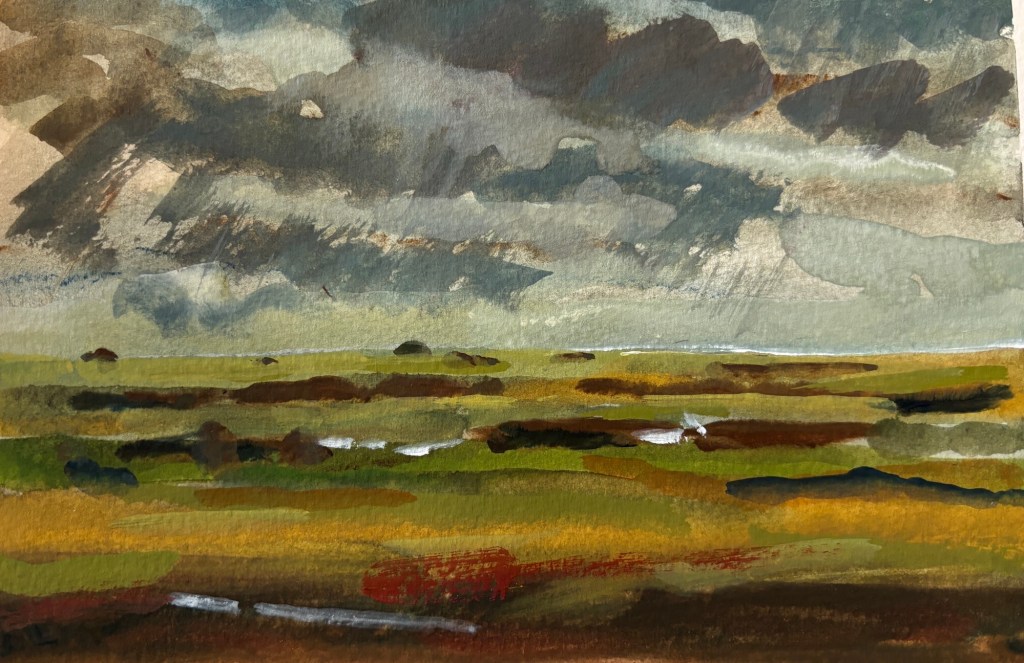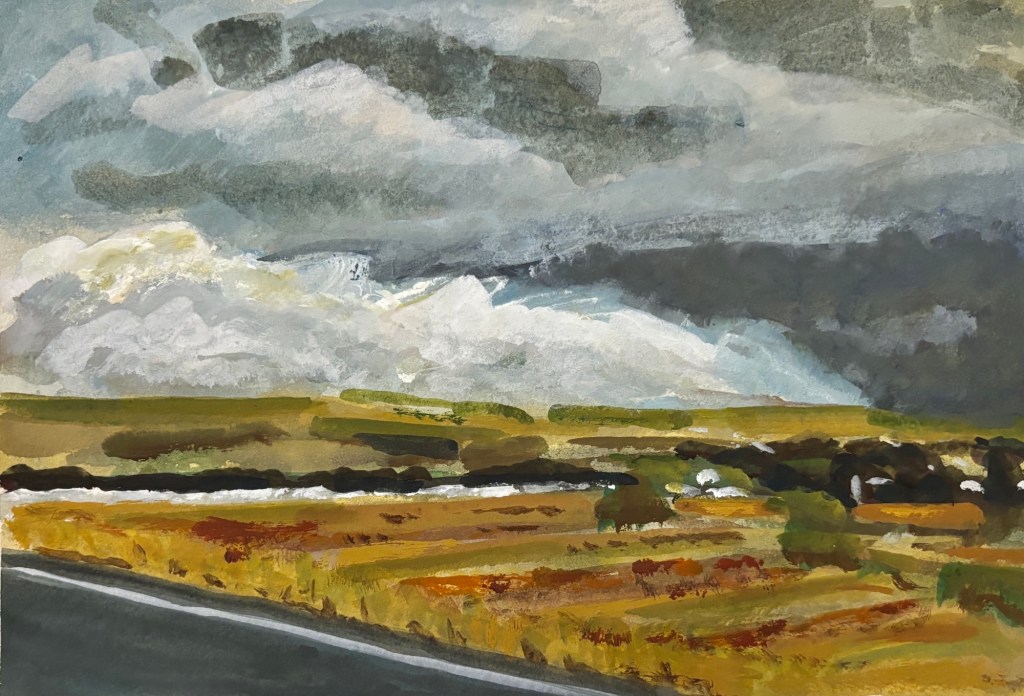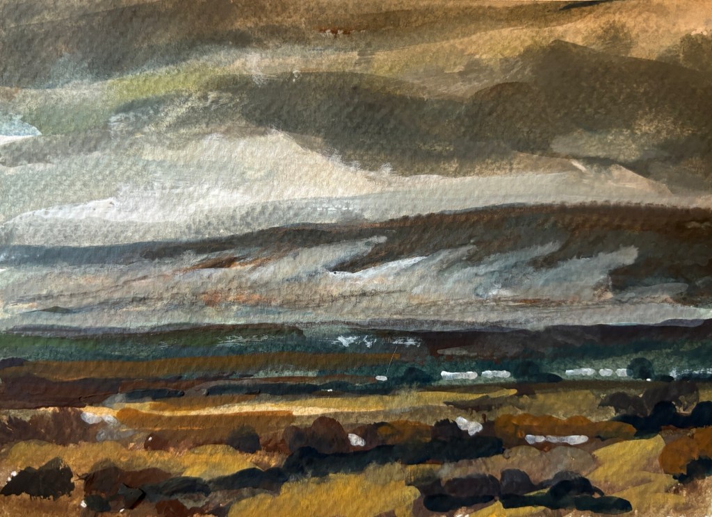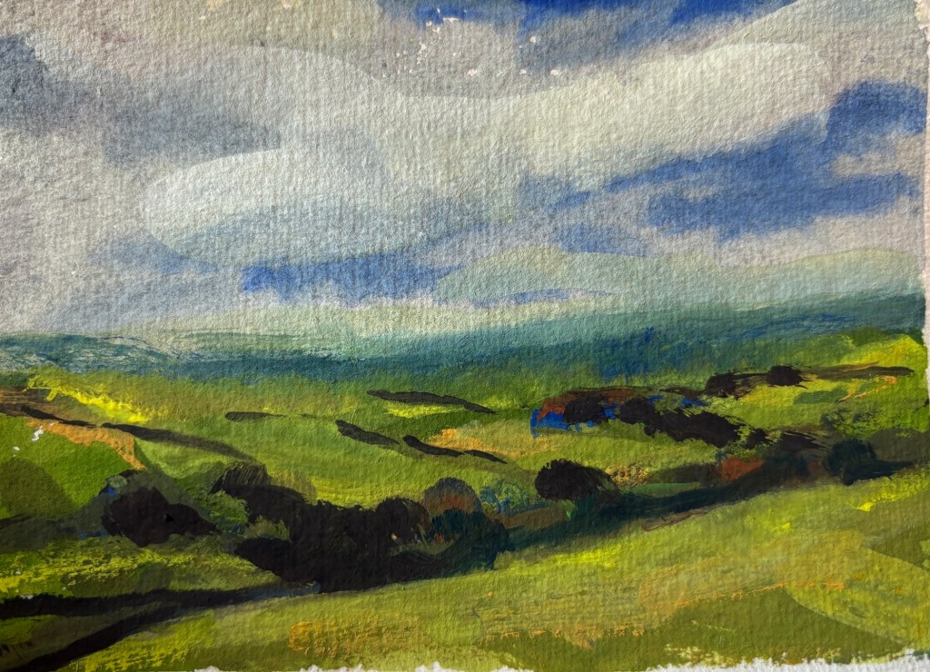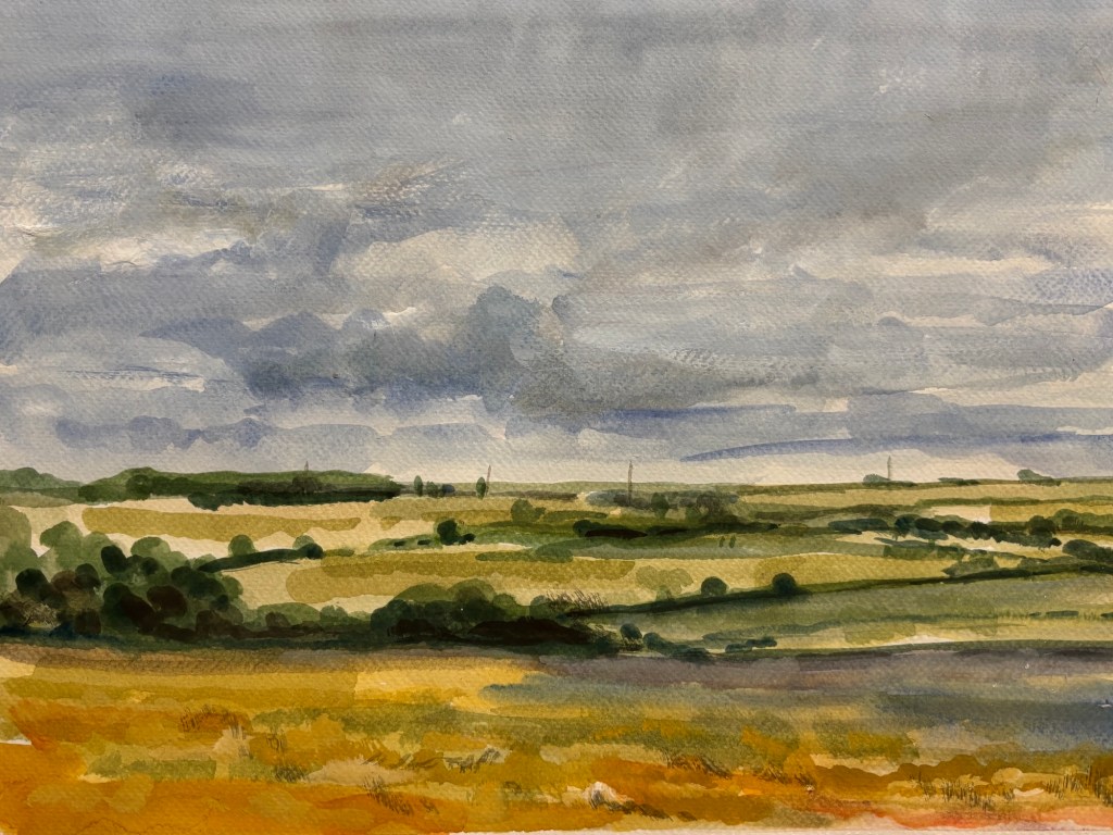 View across the fields 2025 gouache
